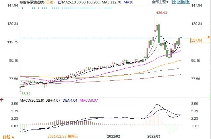 北京时间3月24日13:05 布伦特原油连续 报每桶117.04美元