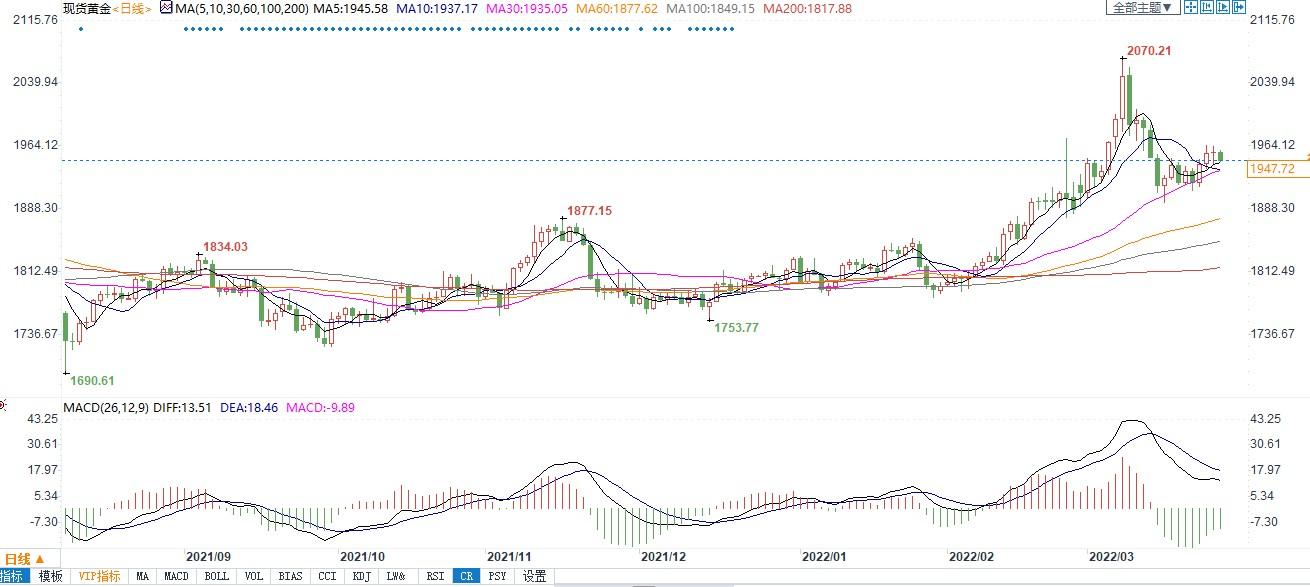 3月24日,纽约期金收市升1.3%,每盎司报1962.2美元。现货金收市升0.66%,报每盎司1956.9美元,盘中一度高见1967.1美元,是3月18日以来最高水平。