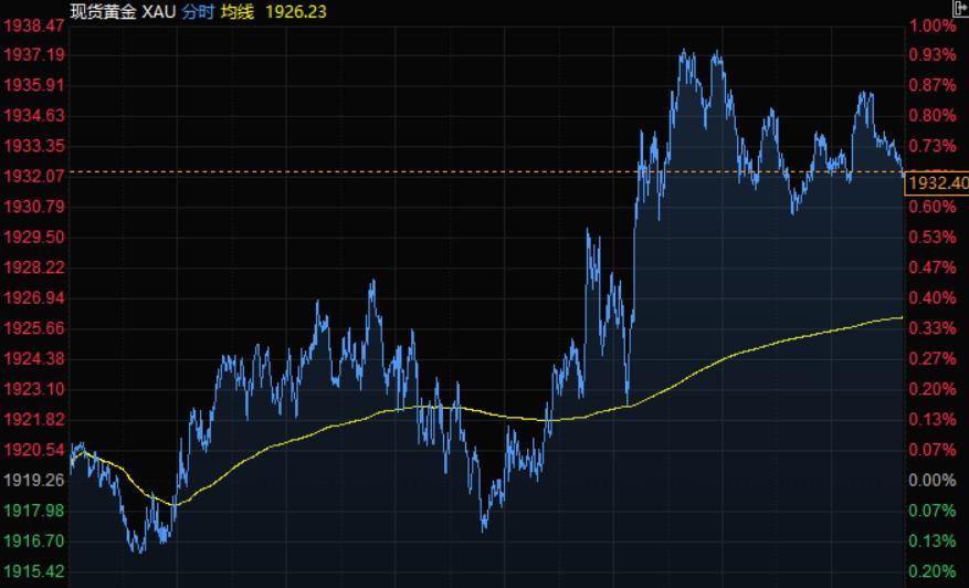 现货黄金周三走高,盘中一度上涨1%至1938.47美元/盎司,因美元下跌,投资人对俄罗斯和乌克兰是否可能停火再生疑虑;美元指数跌至近四周低点,令以美元计价的黄金对其他货币持有者来说价格更低。