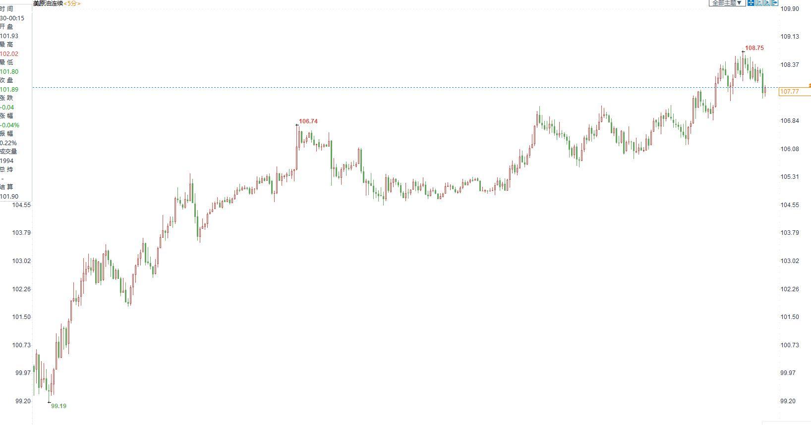 美国原油价格5分钟图显示