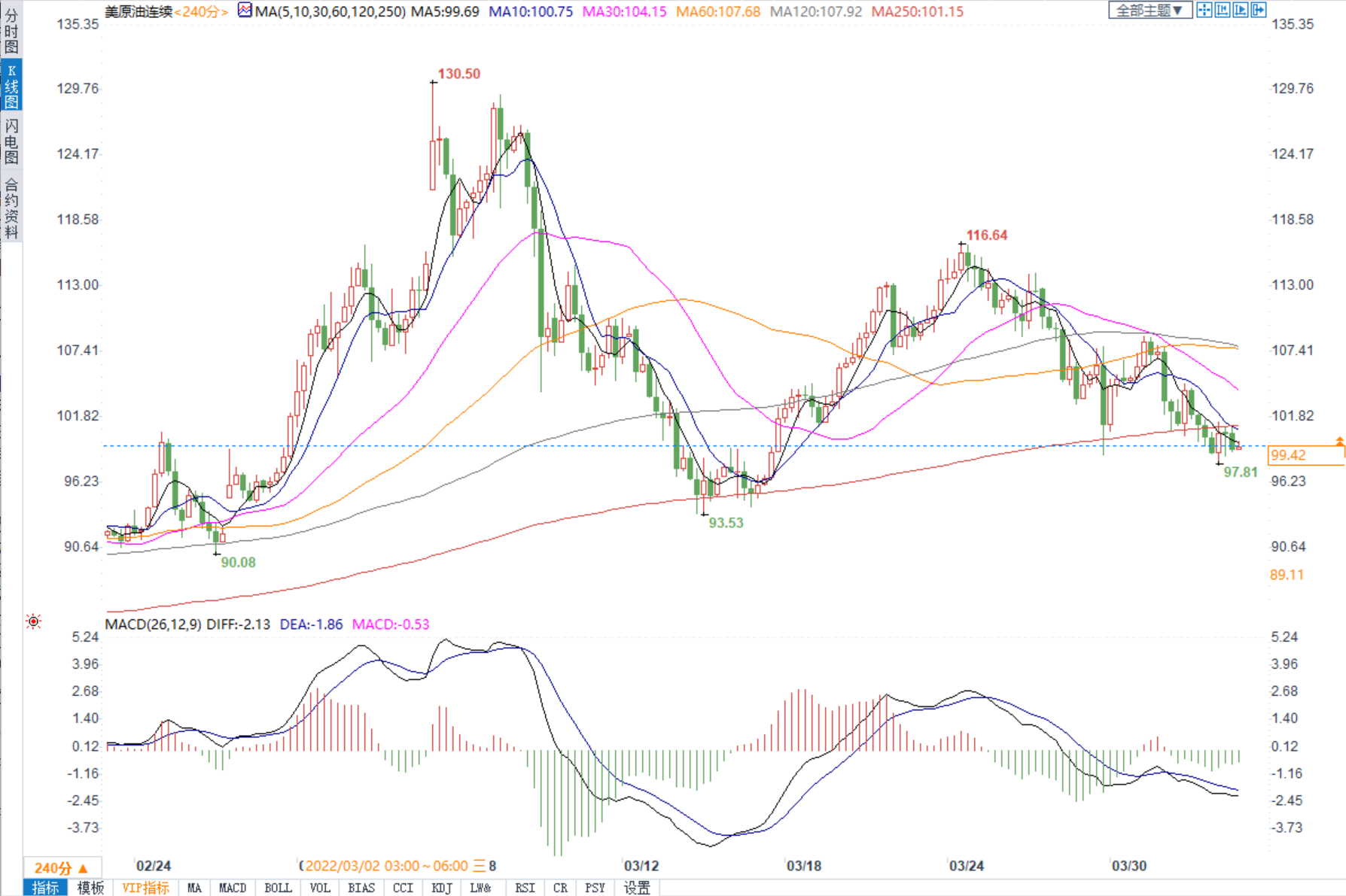 周五(4月1日)布油期货下跌0.3%,结算价报104.39美元/桶。国际能源署(IEA)表示,美国及其盟国同意一个月内第二次协同释放石油储备,以缓和因俄罗斯入侵乌克兰而引发的市场动荡,但由于没有具体说明释放数量,使得油价跌幅受限。