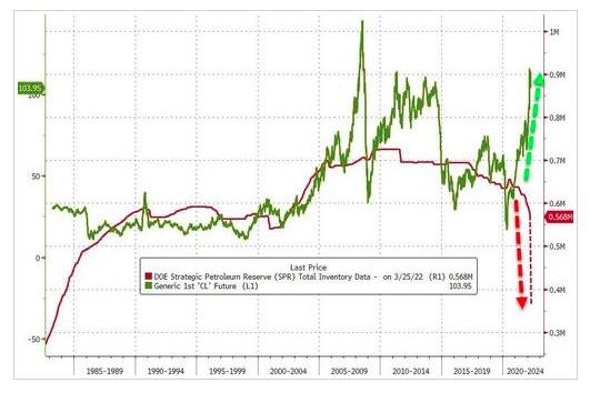 拜登宣布,从5月开始,美国将在六个月内从战略石油储备(SPR)中每日释放100万桶原油。总计释放的1.8亿桶原油储备将相当于全球两天的原油需求量,这也是华盛顿方面在过去六个月的时间里第三次动用战略石油储备。