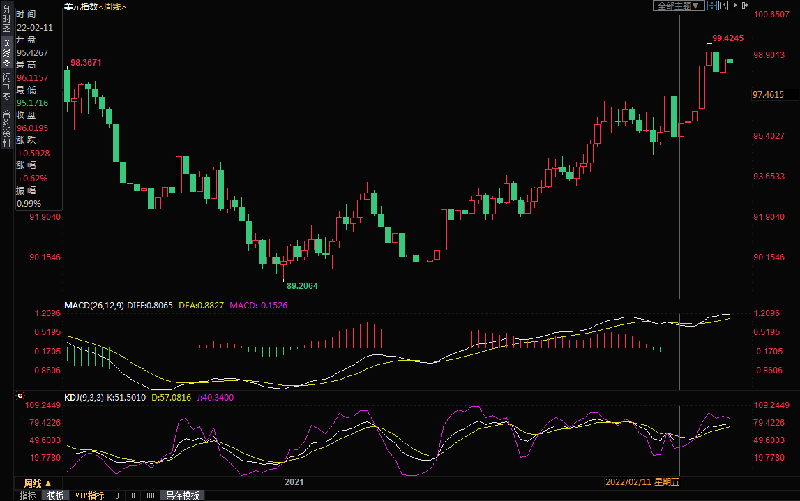 尽管本周市场俄乌局势的担忧情绪降温,美元指数一度跌至97.68附近的一个月低点,但美国通胀和就业数据强化5月加息50个基点的预期,美元随后反弹,收报98.58,周线仅下跌0.2%。