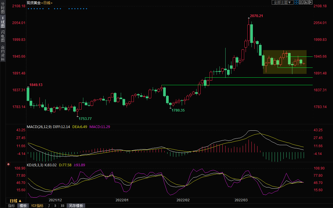 Bannockburn Global Forex董事总经理Marc Chandler表示,市场将密切关注美联储本周公布的3月货币政策会议纪要。会议纪要中出现的任何鹰派倾向都可能对金价构成压力。预计金价将试探1900美元左右的支撑位。