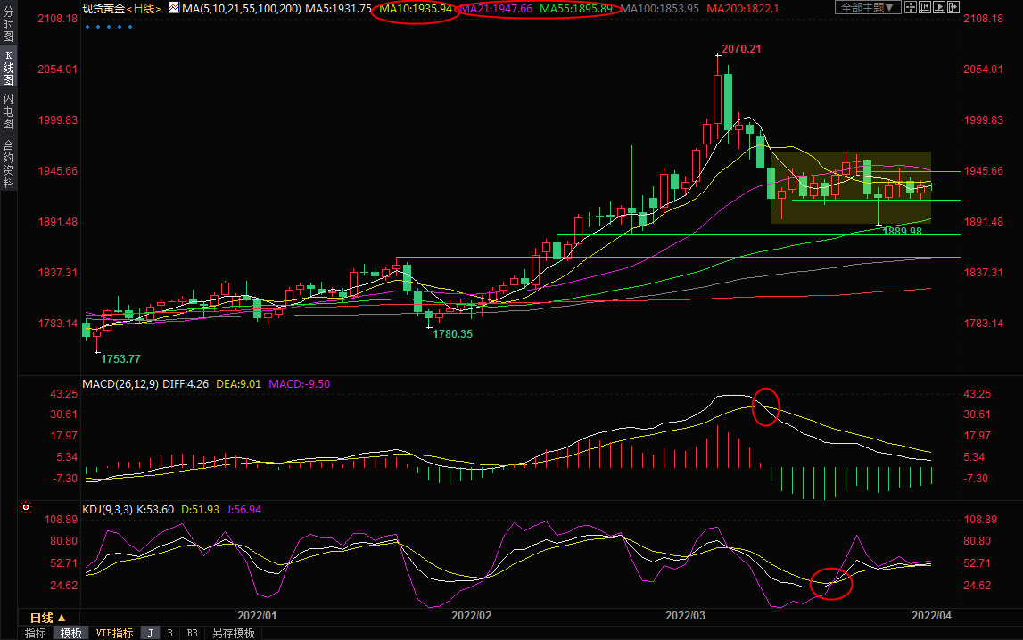 上方初步阻力在10日均线1935.94附近,21日内均线需要重点关注,如果顶破该阻力,则增加短线看涨信号,强阻力在3月24日高点1966.03附近。
