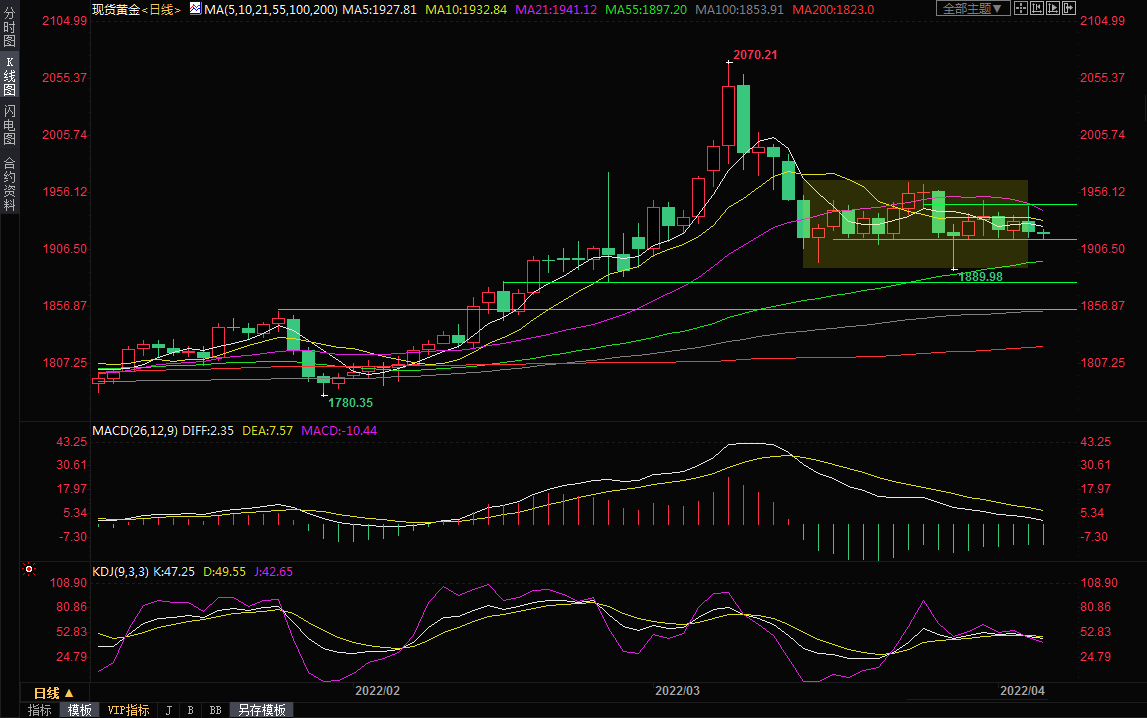 上方初步阻力在5日均线1927.23附近,21日均线阻力目前在1941.01,若能意外顶破该阻力,则增加短线看涨信号;进一步阻力在上周四高点1949.72附近,然后是3月24日高点1966附近阻力。