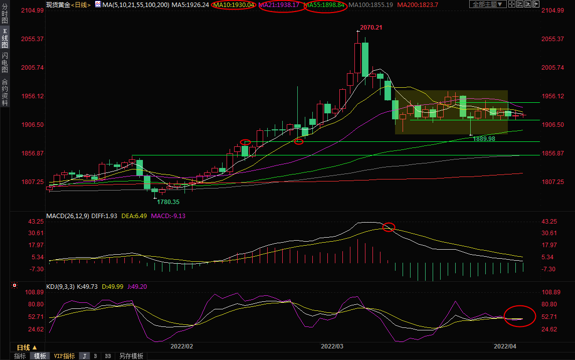 上方初步阻力在10日均线1930.09附近,21日均线目前在1938.19附近,若金价顶破该阻力,则增加短线看涨信号。进一步阻力分别关注3月31日低点1949.72和1966.03。