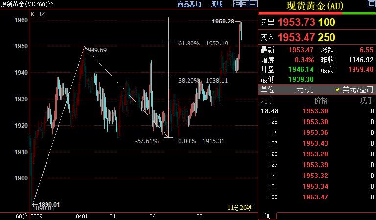 北京时间20:23,现货黄金上涨0.76%至1962.47美元/盎司;COMEX期金主力合约上涨1.09%至1966.8美元/盎司;美元指数上浮0.04%至99.888。
