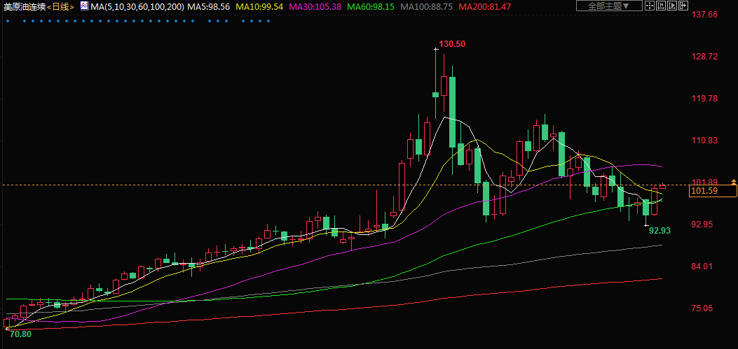 周三(4月13日)亚洲时段,美油延续涨势,现报101.55美元/桶;因俄罗斯石油和天然气凝析油产量降至2020年低点,OPEC警告称,可能出现的俄罗斯供应缺失恐无法弥补。另外,普京称与乌克兰的和谈陷入僵局,誓言将在乌实现所有“崇高”目标,提振油价。