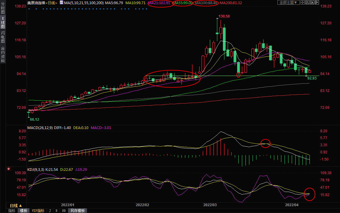 不过,87.4-95.8区域是2月份的密集成交区,KDJ已经发出短线超卖信号,短线跌破该区域的可能性不大;油价短线也存在调整或者是反弹机会;初步阻力在55日均线99.00,然后是100整数关口,21日均线阻力目前在102.91附近,若回升至该位置上方,则增加后市看涨信号。