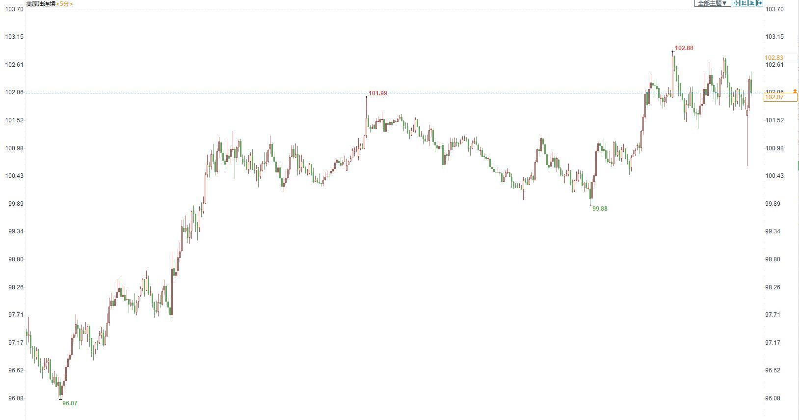美国原油价格5分钟图显示