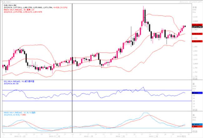 黄金从技术面来看,昨日上涨收阳,守住前一日低点1940上方整理,欧美盘放量冲高,最高触及近期新高位1981,日线形成连阳式偏强反弹,且有持续性。黄金4小时一波放量上涨之后,K线伴随着冲高收低,短线提前完成摸高转弱回落,消息面的不确定性,也将加剧短线震荡频率,金价处于布林中轨与上轨之间运行,MACD双线向上运行,0轴上方红色动能柱逐步缩小,KDJ向下运行,指标显示金价目前处于震荡走势当中。 4小时打破此前区间后,守住1960上方走延续反弹,顶开布林道一直在中轨之上运行,短线形态偏多,但日内短线走得迂回反复,加上美元的强势,使得黄金多头延续性显得不定。虽然形态上偏多,但是持续性是一个问题,可能会加剧洗盘的频率。日内上方重点关注1990-1995一线阻力,下方短期重点关注1965-1950一线支撑。