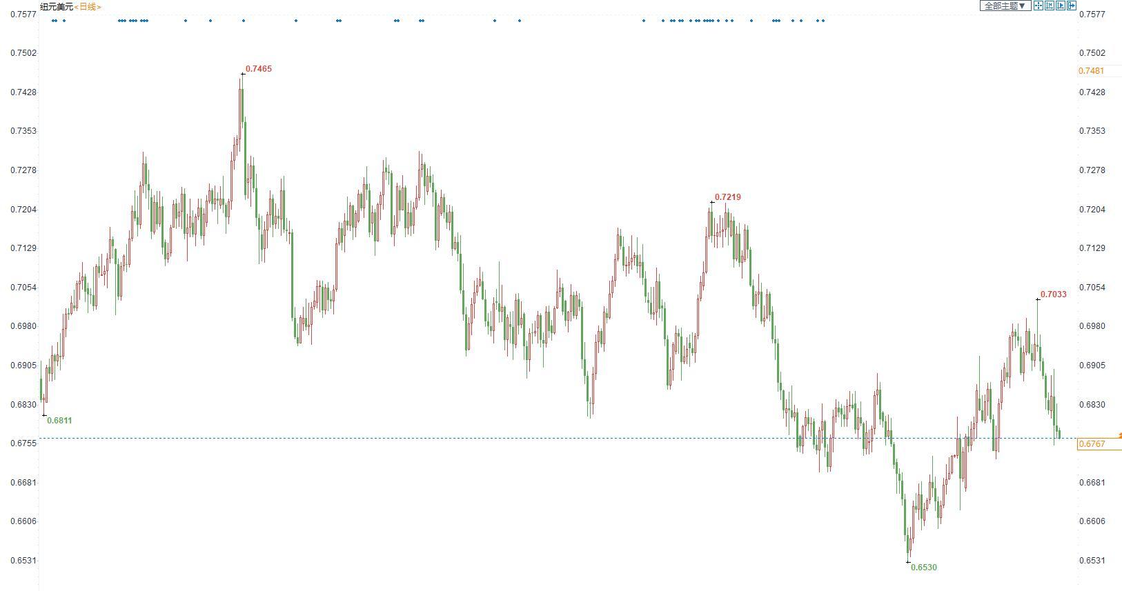 纽元兑美元本周震荡下挫,主要受累于强势美元,但新西兰央行的鹰派政策限制了纽元下跌