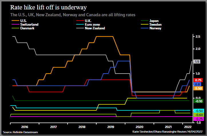 市场几乎可以肯定,该央行将在5月5日将其指标利率提高25个基点至1%,然后在2022年底前提高到2%-2.25%。