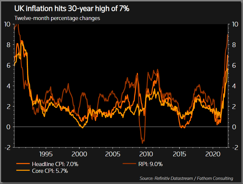 随着通胀率达到30年来的新高,英国央行面临进一步收紧政策的压力。英国自12月以来已加息三次。