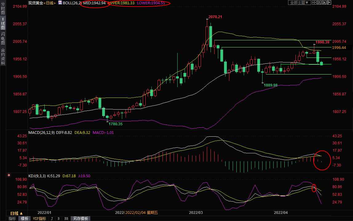 上方初步阻力在1950附近,然后是4月14日低点1960.58附近,若布林线中轨失而复得并回升至该位置上方,则削弱后市看空信号,进一步阻力在布林线上轨1981.33附近。