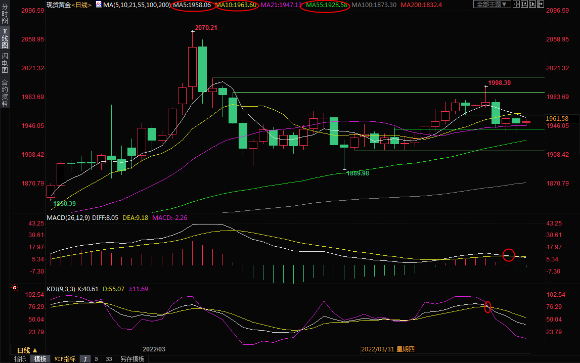 日线级别:震荡;均线交织,MACD死叉,KDJ死叉,在顶破10日均线1963.56前,后市略微偏向空头,初步支撑在布林线中轨1944.94附近,进一步支撑在隔夜低点1936.60附近,55日均线支撑在1928.58附近,若跌破该位置,则增加短线看空信号。