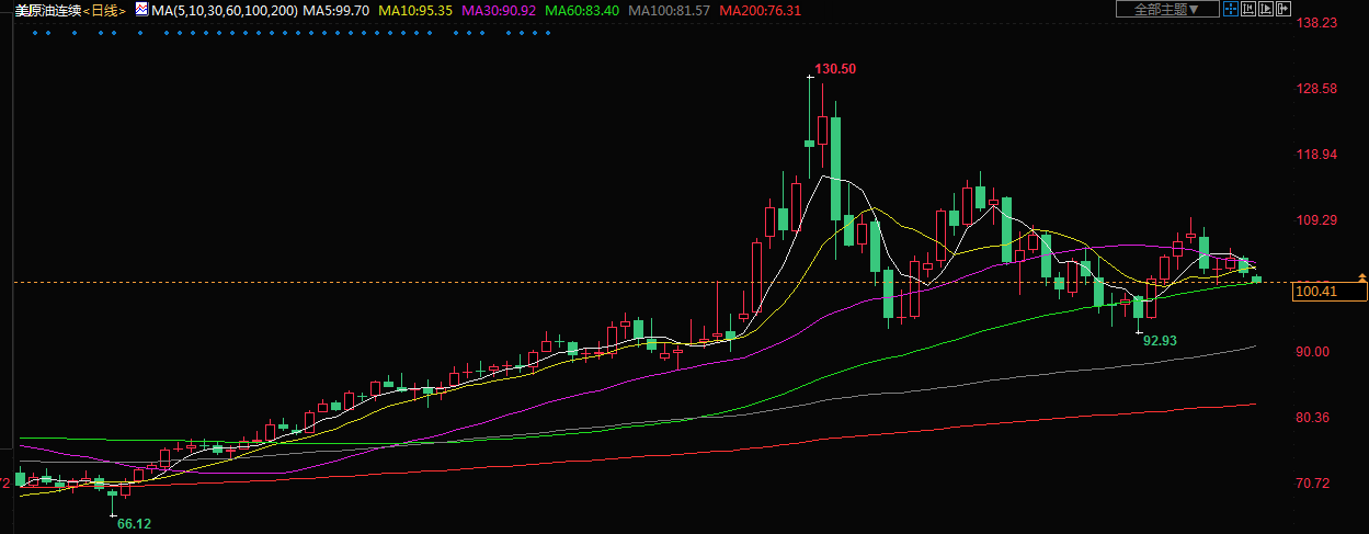 北京时间7:52,美原油现报100.54美元/桶。