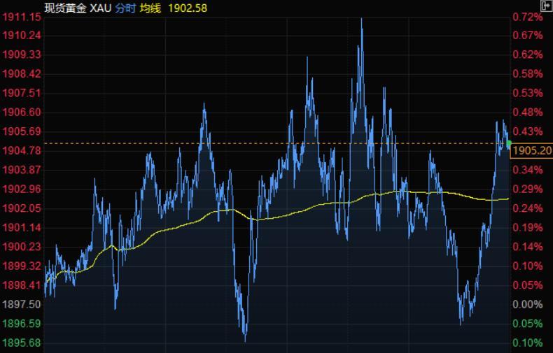 金价周二从前一交易日触及的逾一个月低位小幅回升,现货黄金小幅上涨,收于1900上方,投资者在担忧全球经济增长停滞和通胀急升之际寻求避险。