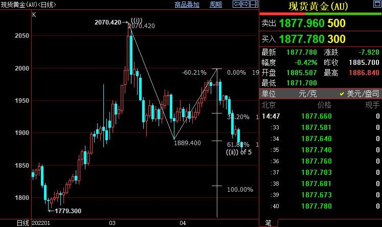 周四(4月28日),国际金价跌创2月17日以来新低至1871.99美元/盎司,因美元走高损害了以美元计价的黄金需求,而美联储即将加速升息也削弱了黄金作为通胀对冲工具的吸引力。金价后市料跌破1860美元。