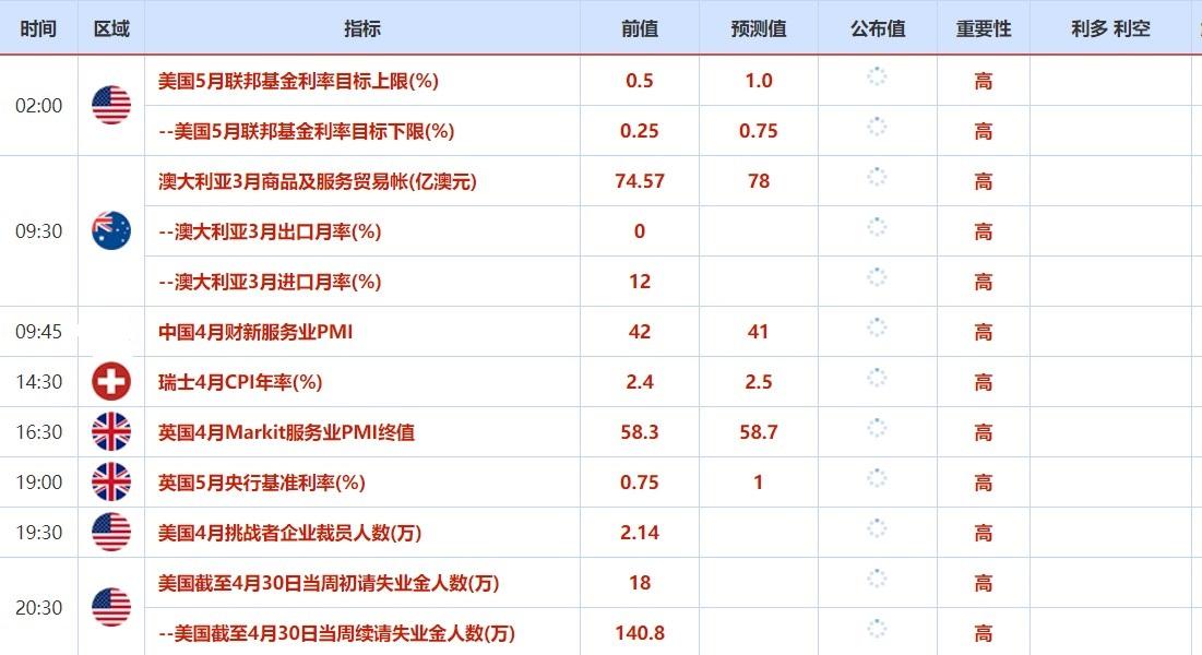 周四(5月5日)关键词:美联储利率决议,英国央行利率决议,美国截至4月30日当周初请失业金人数