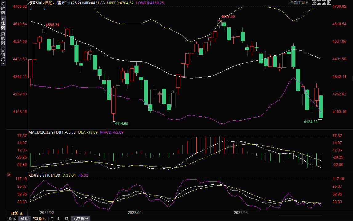 截至上周五收盘,标普500指数跌3.63%,收于4131.93点。纳斯达克指数重挫4.17%,至12334.64点,道琼斯工业指数下跌2.77%,至32,977.21点。