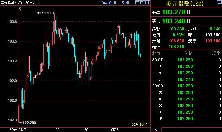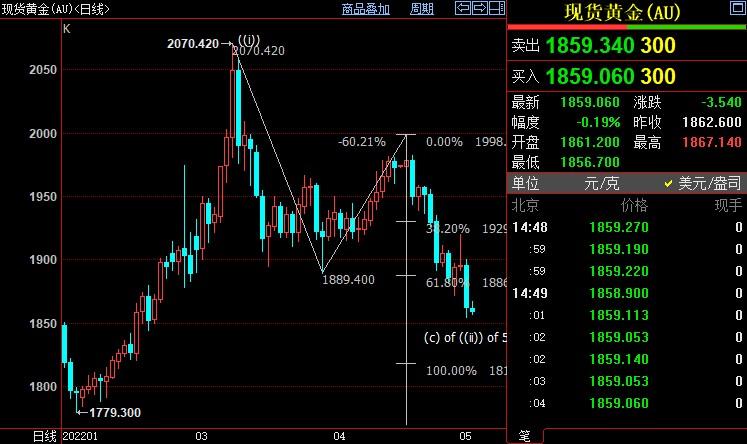 北京时间20:08,现货黄金下跌0.02%至1862.28美元/盎司;COMEX期金主力合约下跌0.07%至1862.3美元/盎司;美元指数下跌0.34%至103.26。