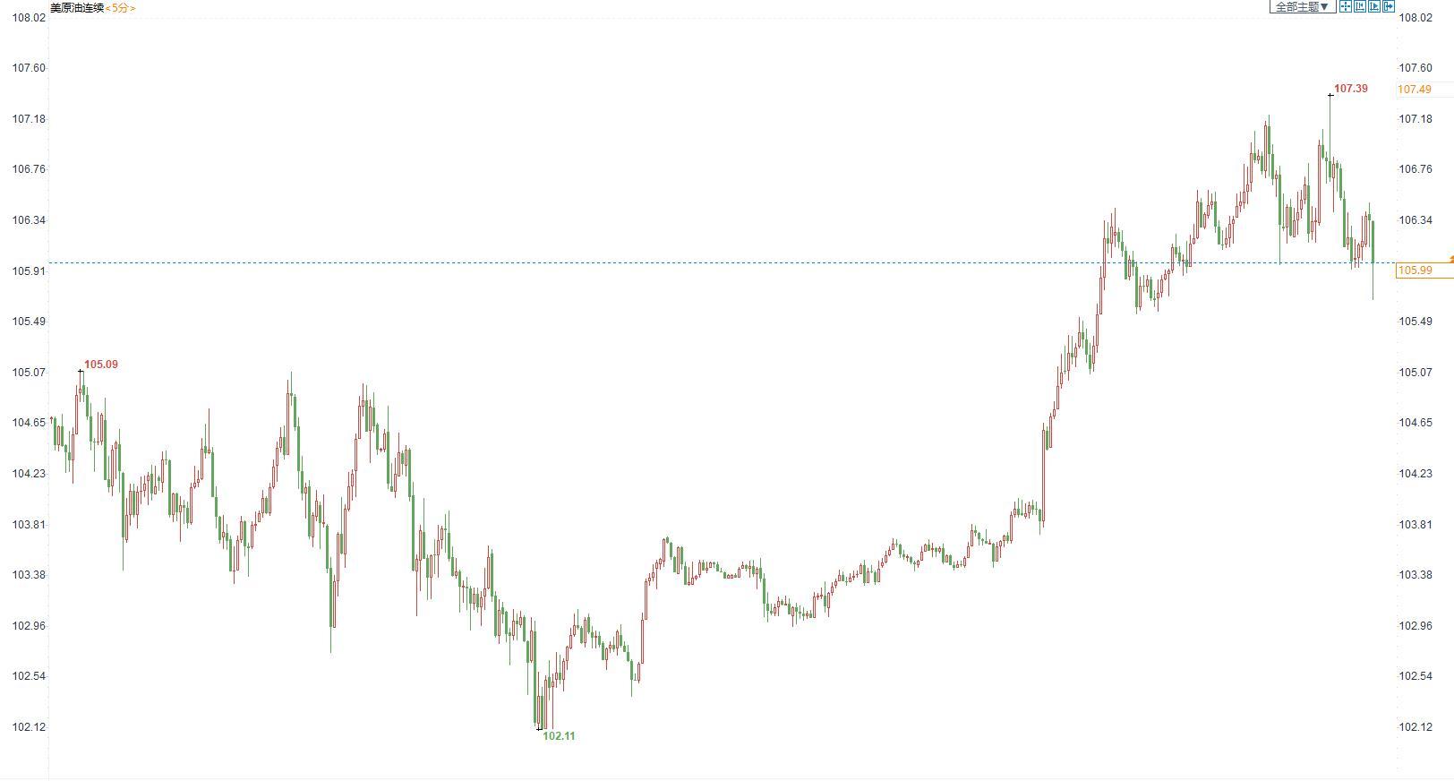 美国原油价格5分钟图显示