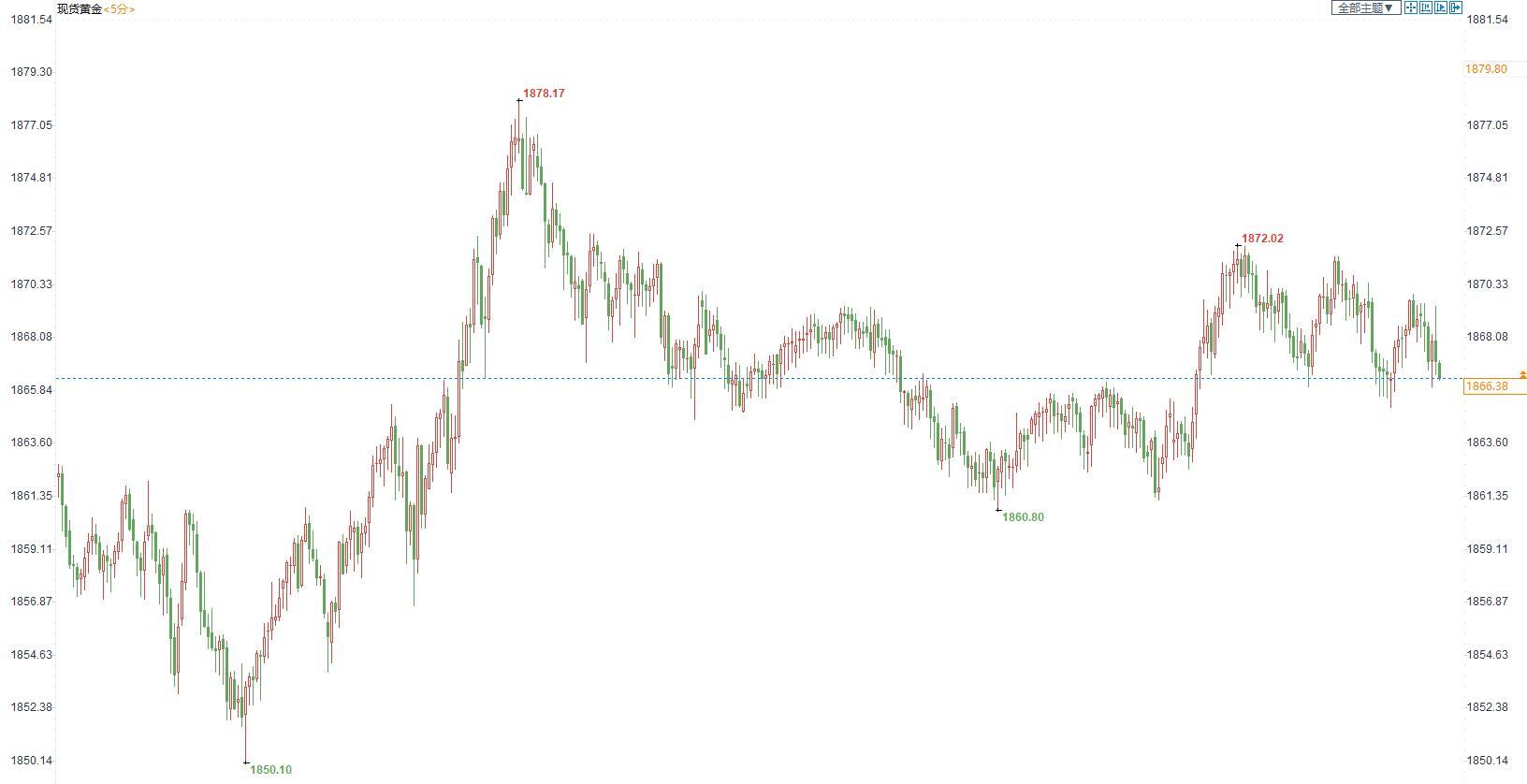 现货金价短线5分钟图