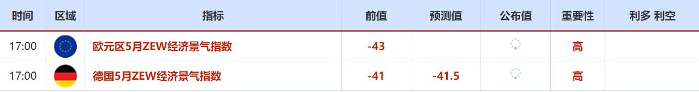 周二(5月10日)关键词:欧元区5月ZEW经济景气指数,英国央行委员桑德斯