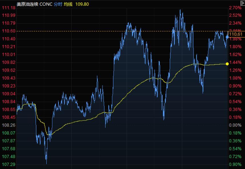美油涨逾2%,尾盘收报110.61美元/桶,且连续第二周上涨,欧盟即将对俄罗斯石油实施制裁,这可能导致供应趋紧,同时交易商摆脱了对全球经济增长的担忧。