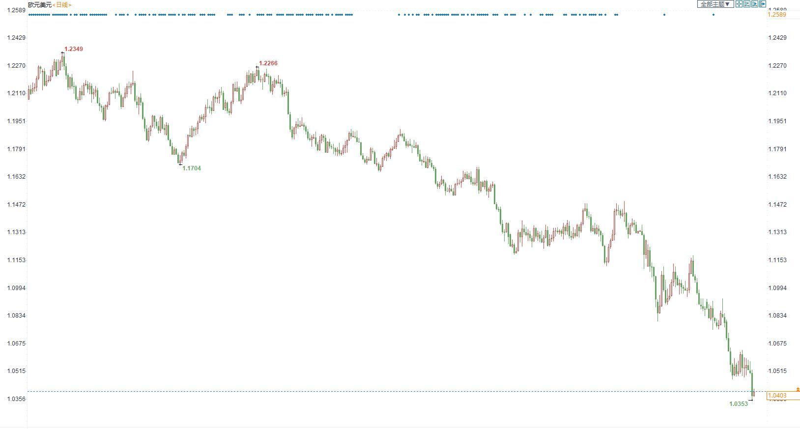 欧元兑美元本周大幅下挫跌至五年低位,主要受累于强势美元,欧洲经济放缓也拖累欧元
