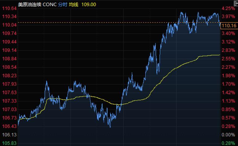 上周五美油尾盘大涨3.8%,报110.16美元/桶,美国汽油价格飙升至历史新高,投资者担心如果欧盟禁运俄罗斯石油,供应将收紧。