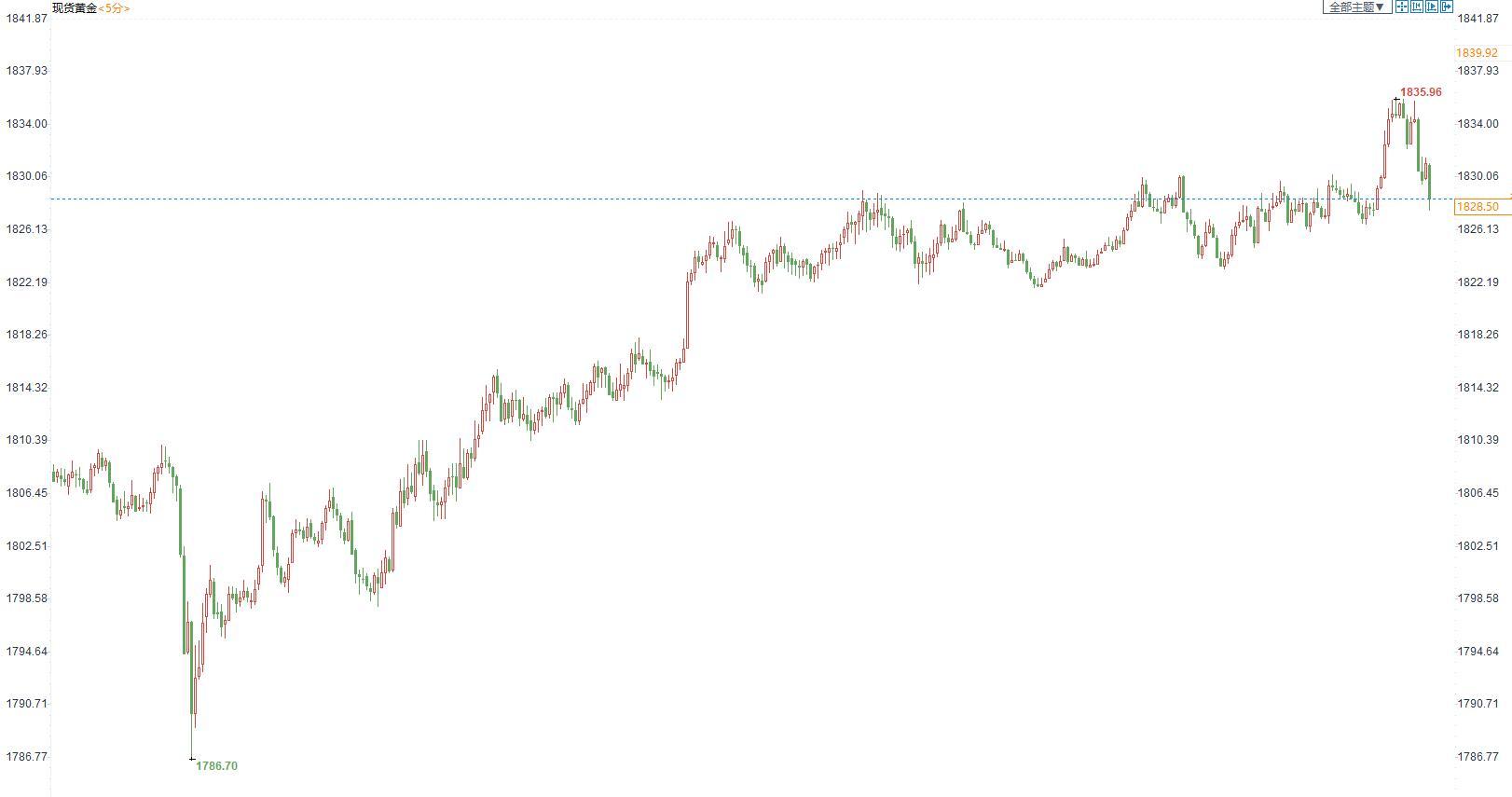 图:现货金价5分钟图