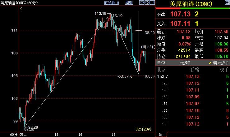 北京时间15:58,NYMEX原油期货上浮0.05%至109.64美元/桶;ICE布伦特原油期货上涨0.62%至109.70美元/桶。