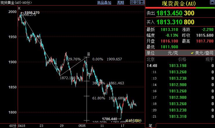 周四(5月19日),国际金价小幅承压,尽管美元同样走低,但美联储持激进立场对抗通胀,抑制了黄金上涨前景。金价后市料跌破1783美元。