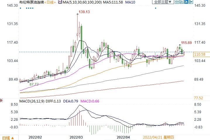 北京时间5月19日12:40 布伦特原油连续 报 110.58美元/桶