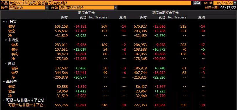 2.美国商品期货交易委员会(CFTC)数据显示,截止5月11日至5月17日当周,COMEX白银期货投机性净多头头寸减少1034手至670手,净多头头寸是约三年来的最低水平;其中,只做多头寸在截至5月17日的一周中增加1365手,至41225手;做空头寸增加2399手至40555手,空头仓位达到约七个月最高。