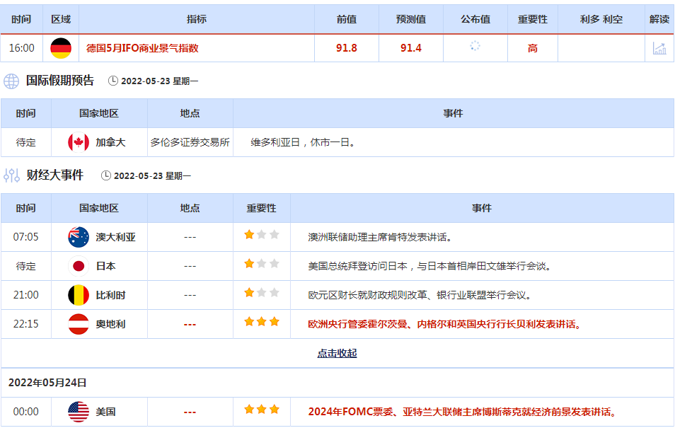 5月23日财经早餐:本周将迎新西兰联储决议,美联储纪要将是焦点,美国PCE或引爆市场