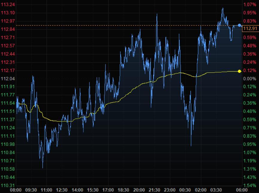商品收盘方面,上周五COMEX 6月黄金期货收平,报1842.10美元/盎司,上周累计上涨1.8%,结束之前连跌四周的趋势。6月WTI上涨1.02美元,结算价报113.23美元;交投更活跃、未平仓头寸更多的7月WTI上涨39美分,结算价报110.28美元;7月布伦特上涨51美分,结算价报每桶112.55美元。