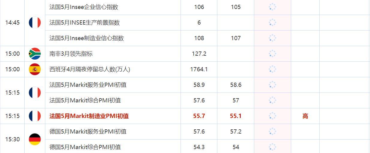 15:15 法国5月Markit制造业PMI初值 , 前值 55.7 , 预期值 55.1 , 公布值:待发布