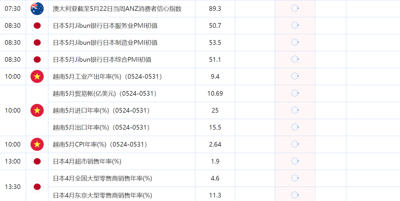 5月24日财经数据和大事件一览