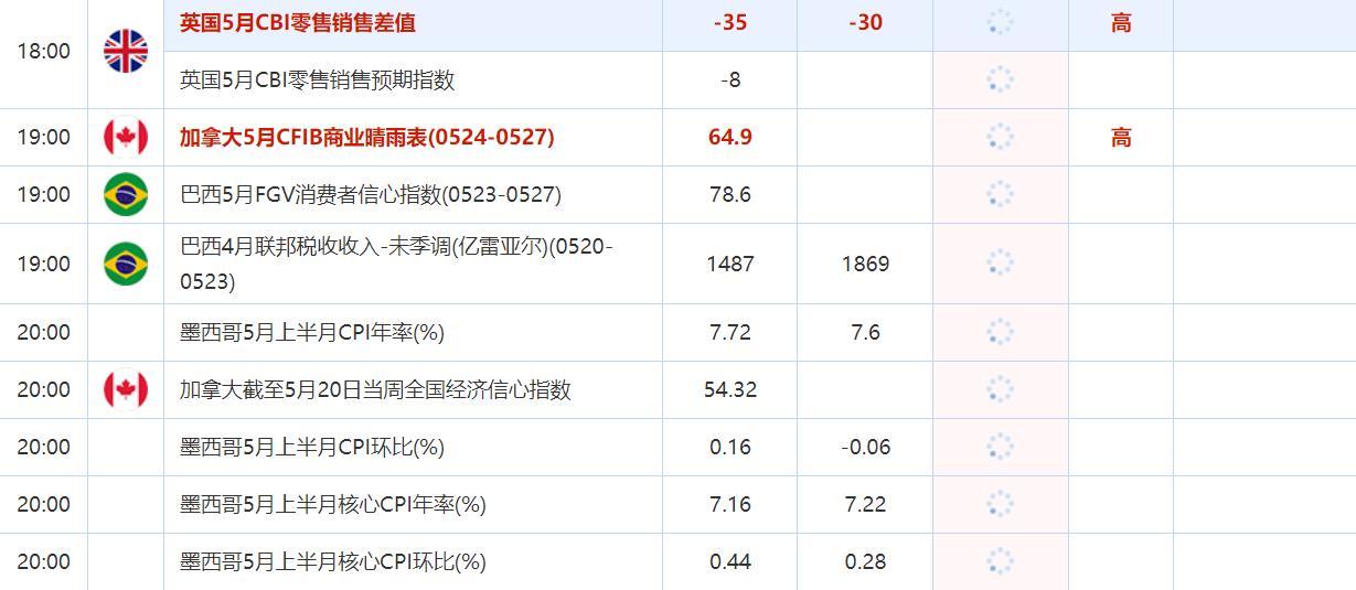 18:00 英国5月CBI零售销售预期指数 , 前值 -8 , 预期值 -- , 公布值:待发布