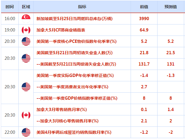 周四,美国商务部将公布第一季国内生产总值(GDP)环比年率的修正值,分析师预计,数据将会被小幅上修,之前公布的初值为萎缩1.4%。