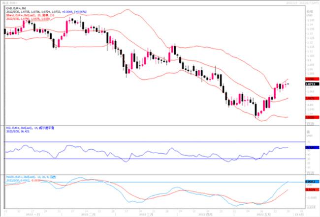 英镑兑美元上周震荡回升,主要受益于美元走软,但上周市场对英国央行谨慎升息的预期升温限制英镑上涨。上周英国公布的制造业和服务业数据表现不佳。分析师指出,5月份的英国服务业和制造业的数据显示,英国经济出现严重的放缓迹象。由于受到成本上升等因素的影响,英国的经济活动几乎停滞。甚至有分析师认为,二季度英国经济会陷入负增长。随着供应链、劳动力短缺等因素的影响,通胀形势可能还会恶化。英国经济陷入滞涨危机,这也使得英国央行陷入两难。该行需要进一步收紧货币政策,以应对日益严重的通货通胀,但同时也担心过快的行动会为英国经济带来衰退风险。英镑上周五震荡过后继续续走高,日线报收上下影线小阳线,反弹动能未见减弱迹象。结合4小时图来看,布林中轨偏上,MACD零轴上方运行,下方首要支撑1.2560-70,第二支撑1.2520,上方阻力1.2670,1.2720-30,第一支撑在没有下破前提下,短线有望继续测试第一阻力。