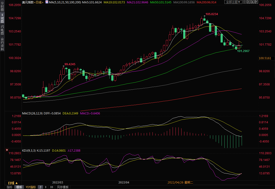 追踪美元兑其他六种主要货币走势的美元指数上涨0.3%,至101.76,有望创下近两周以来的最大单日涨幅。美元指数今年以来上涨约6.4%,5月份下跌1.4%,有望创下一年来最大单月跌幅。