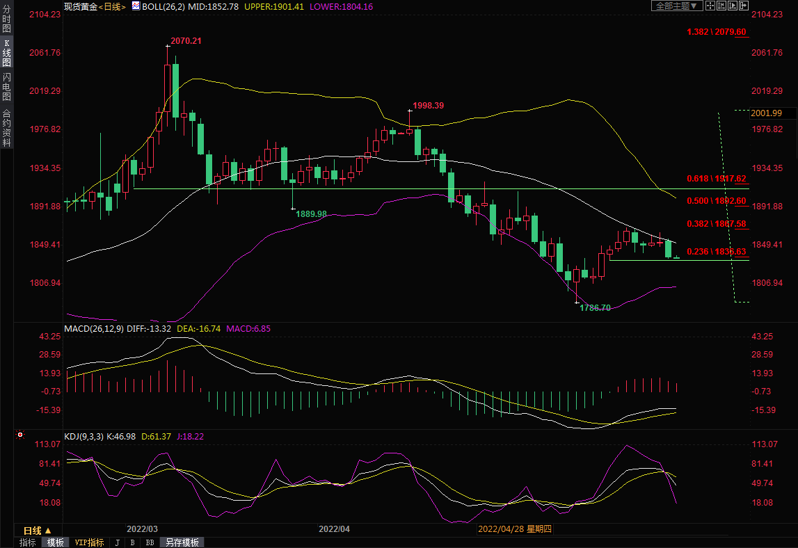 金价周二下跌近1%,至1837.21美元/盎司,盘中最低曾触及1834.96美元/盎司,受累于美元走强,以及尽管通胀飙升令人担忧,美债收益率上升损及黄金的吸引力。