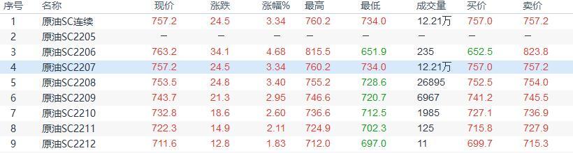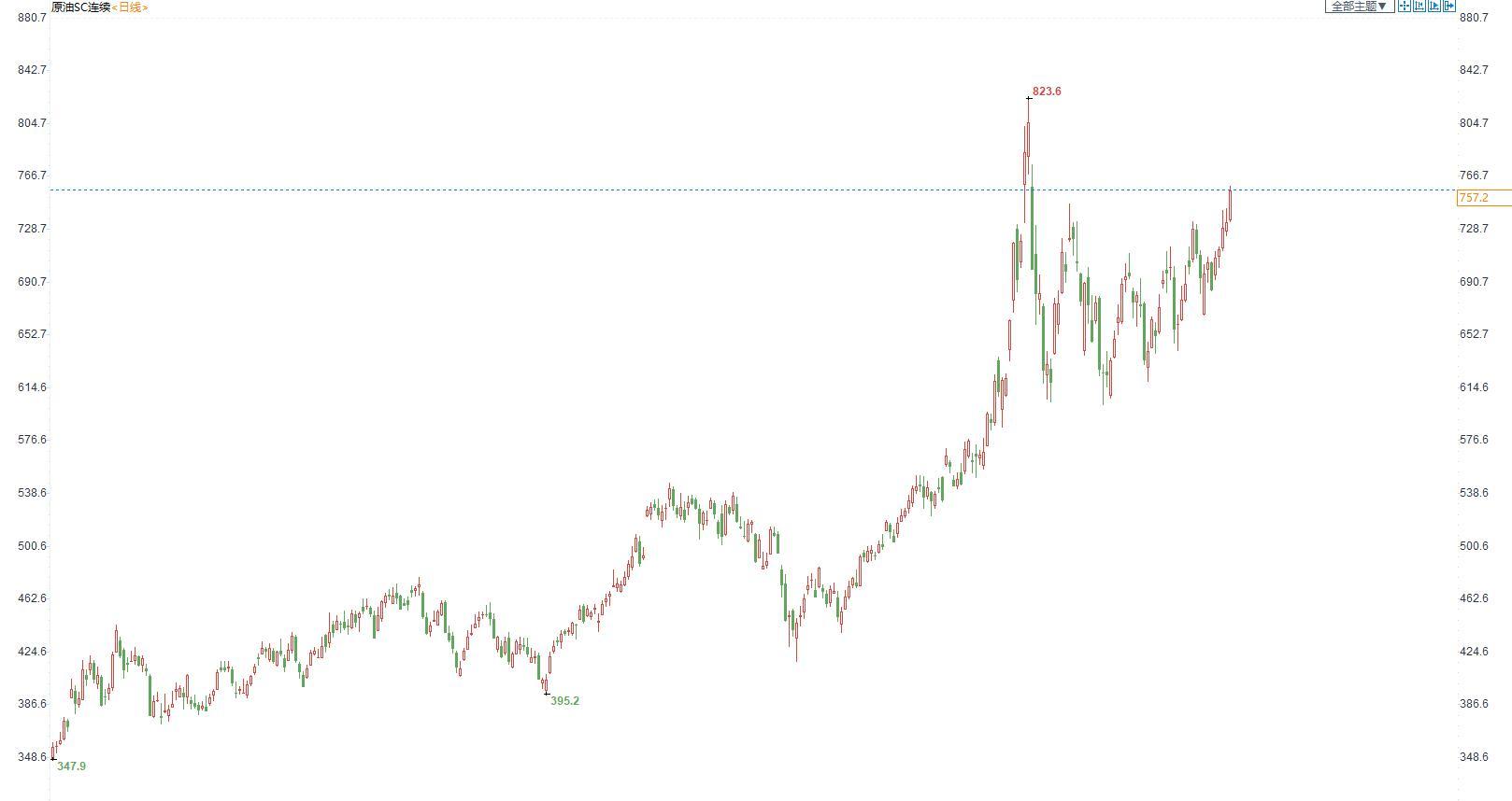 周二(5月31日)上海原油价格收盘上涨24.5元,涨幅3.34%。主力合约2207终盘收于757.2元/桶,涨24.5元/桶。油价收盘上涨,主要因欧盟颁出严格对俄罗斯制裁方案,同时在美欧夏季驾驶需求高峰来临之际,这加剧了人们对本已紧张的供求形势进一步恶化的担忧。