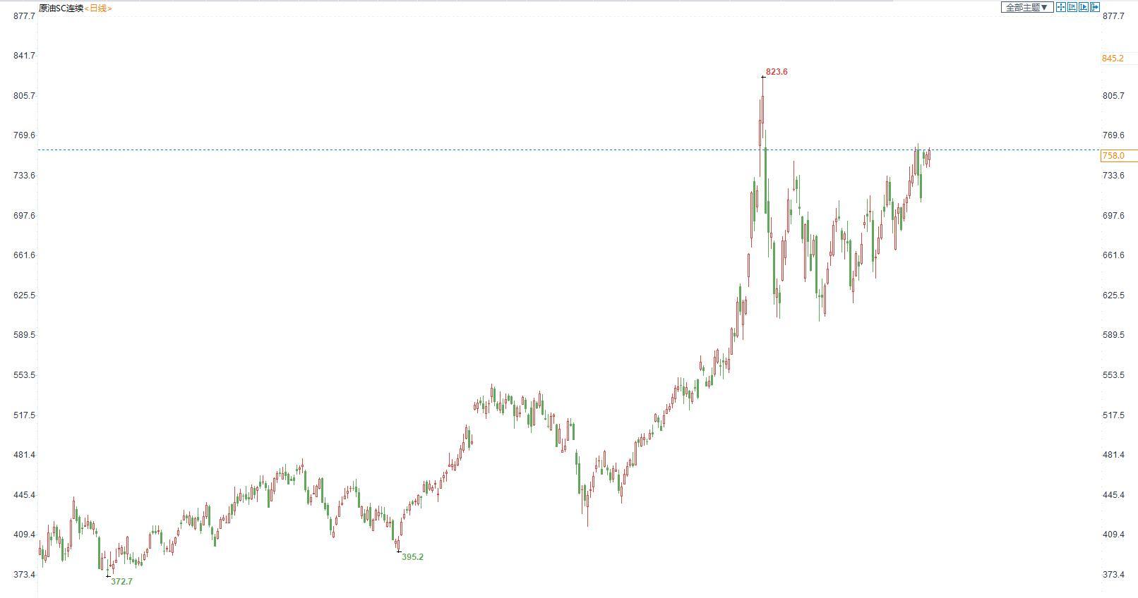 大越期货:上海原油短线735-760区间操作,长线多单持有