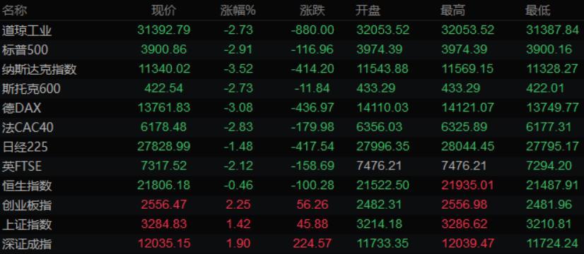 全球主要市场行情一览